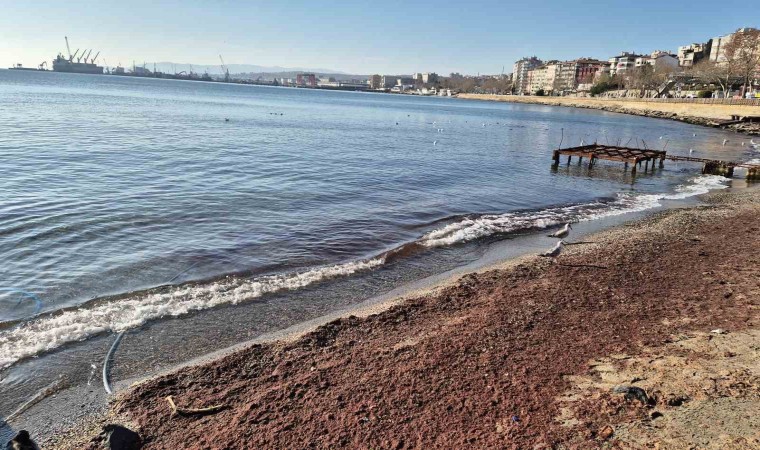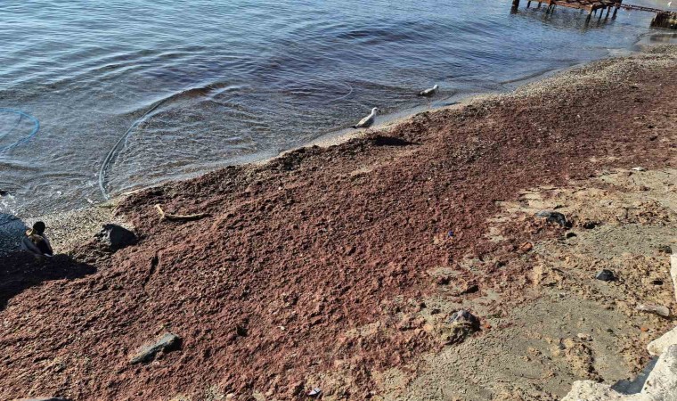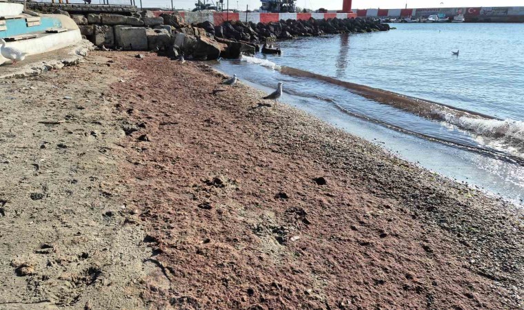 Marmara Denizi’nde etkili olan lodos fırtınasının ardından Tekirdağ’ın Süleymanpaşa ilçesi kıyılarında kızıl yosunlar birikti.