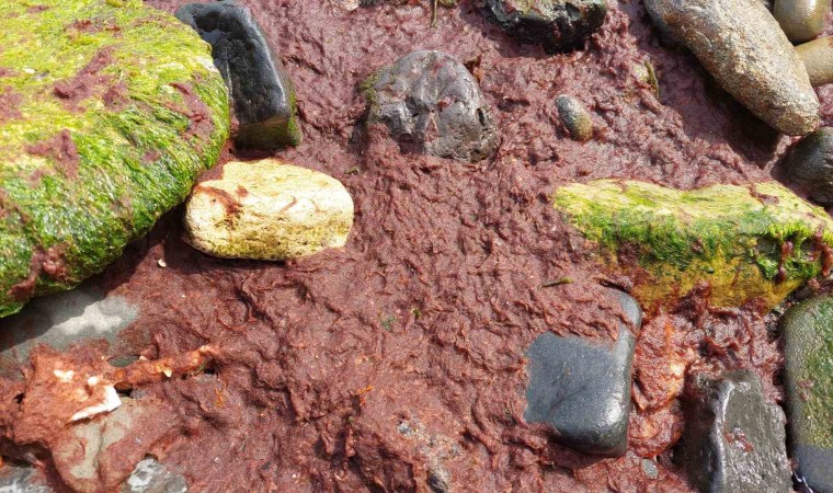 Marmara Denizi’nin Tekirdağ kıyıları kırmızı yosunla kaplanırken, balıkçılar bu durumun normal olduğunu endişelendirecek bir durum olmadığını belirtti.