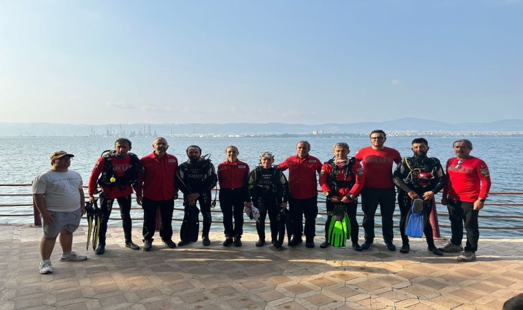 Gölcük depreminin anısına dalış yaptıklarını söyleyen AKUT Kocaeli ekip lideri Abdurrahman Eki, “Az önce hepimizin gördüğü üzere, İstanbul ve Kocaeli ekibinden 5 dalış eğitmeni arkadaşımız, 24 yıl önce bugün Gölcük depreminin anısına bir anı dalışı gerçekleştirdi. 24 yıl önce burada otel, vapur iskelesi, çay ocağı, yerleşim yerleri vardı. O gece yaşadığımız o talihsiz depremden sonra bir batık şehir oluştu. Bu batık şehre arkadaşlarımız anı dalışı gerçekleştirerek Türk bayrağı ve AKUT anı bayrağımızı çıkararak 24 yıl önce yaşanan bu depreme dikkat çekmek istediler. Bu bizim için çok önemliydi çünkü yakın geçmişte Kahramanmaraş merkezli büyük bir deprem yaşadık. 24 yıl önceden Kahramanmaraş depremine gelene kadar açıkçası çok fazla yol kat edilmediğini çok fazla tedbir alınmadığını görmek bizi üzdü. En büyük tedbirin önlem almak olduğunu biz çok iyi biliyoruz. AKUT olarak bütün çalışmalarımızı bu yolda gerçekleştiriyoruz. Umarım hiçbir zaman hiçbir yerde bir doğal afet meydana gelmez ama biz yarın bir deprem olacak, afet olacak gibi eğitimlerimize, tatbikatlarımıza, operasyonlarımıza ve çalışmalarımıza devam ediyoruz. Bu bilinçlendirme ile insanlarımızı bilinçlendirerek afet öncesinde tedbir almalarını sağlayarak oluşabilecek bir doğal afette en az hasarla atlatmalarına yardımcı olmaya çalışıyoruz. Herkesi bu vesileyle AKUT’a gönüllü olmaya davet ediyoruz” ifadelerini kullandı.