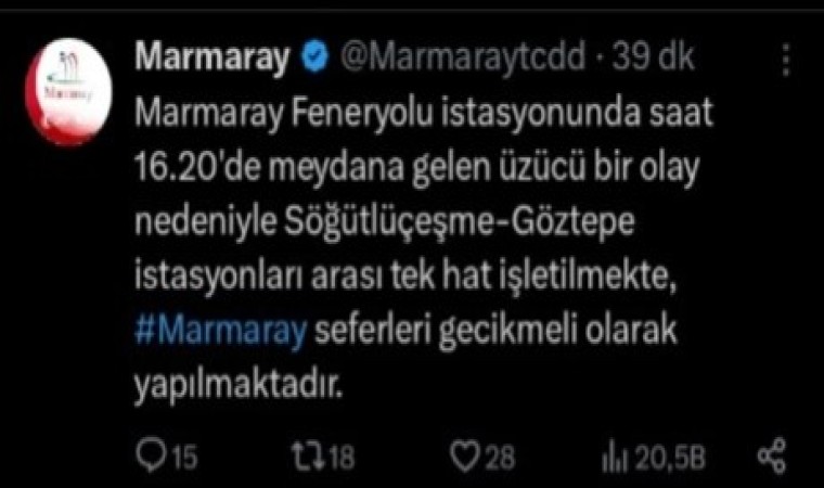 Olay, Marmaray Feneryolu istasyonunda saat 16.30 sıralarında meydana geldi. Edinilen bilgiye göre, ismi henüz öğrenilemeyen bir şahıs, seferler yapıldığı sırada perona yaklaştı. Bir anda raylara atlayan şahıs trenin altında kaldı. Durumu fark eden makinist, ekiplere haber verdi. İhbar üzerine olay yerine polis ve sağlık ekibi sevk edildi. Polis Marmaray’da güvenlik önlemi alırken, seferler durduruldu. Sağlık ekipleri şahsın hayatını kaybettiğini tespit etti. Cenaze Adli Tıp Kurumu morguna kaldırılırken, seferler bir süre sonra normale döndü.