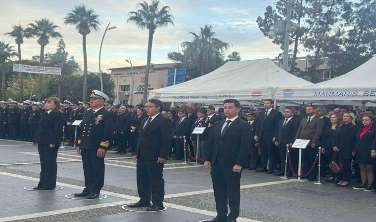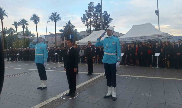 10 Kasım Atatürk’ü anma programları dahilinde Marmaris Atatürk meydanında ilk olarak çelenk sunma töreni gerçekleştirildi. Kaymakam Nurullah Kaya, Marmaris Belediyesi Başkanı Acar Ünlü, Garnizon Komutanı Tuğamiral Neslim Eski, çelenk sundu. Çelenk sunumunun ardından Atatürk’ün hayata gözlerini yumduğu 09.05’te ilçe genelinde sirenler çaldı, 2 dakikalık saygı duruşu yapıldı. Saygı duruşunun ardından Aksaz Askeri bandosu eşliğinde İstiklal marşının okunması ile Atatürk meydanındaki tören sona erdi.