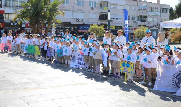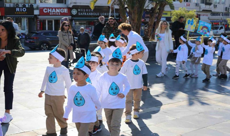 Öte yandan ilçede bulunan biz özel okulun ilkokul öğrencileri de ellerinde “Suyumuzu harcama, geleceğimizi karartma” “Su varsa hayat var” “Susuz dünya istemiyoruz” yazılı dövizlerle büyüklere seslendi.
