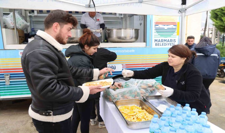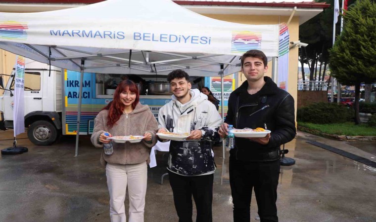 Marmaris Belediyesi, Turizm Meslek Yüksekokulu’nun ardından Sağlık Meslek Yüksekokulu önünde de öğrencilere çorba ve makarna ikramında bulundu.