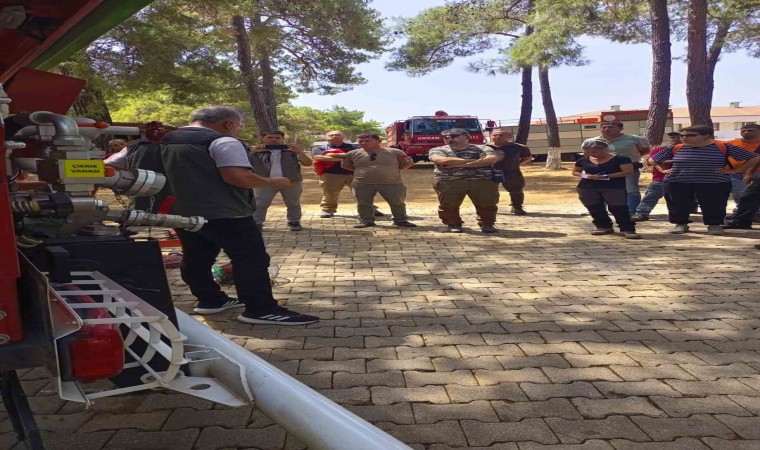 Yangın sezonunun gelmesi ile birlikte özellikle uyarı, önlem ve eğitim faaliyetlerine ağırlık verilen Marmaris’te, Marmaris Orman İşletme Müdürü Gökhan Şahin ve Orman işletme şeflerinin katılımı ile Beldibi Orman İşletme Şefliği önünde yaklaşık 50 kişiye ekipman tanıtımı, malzemelerin kullanımı, ilkyardım, hortum serme, yangın türleri, yangınlara müdahale konularında eğitim verildi. Bu eğitimler kapsamında katılımcılar, orman yangınları ile mücadelede alınacak önlemler ve acil durumlarda uygulanacak stratejiler hakkında bilgilendirildi.