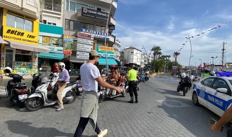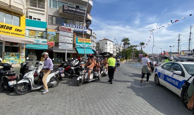 Marmaris İlçe Emniyet Müdürlüğüne bağlı trafik ekipleri ilçe merkezinde ve ara sokaklarda denetimlere devam ediyor. Bir saatlik denetimlerde 170 motosiklet sürücüsü ve 3 tekerlekli araçlar denetlendi. 1 saatte 60 motosiklet sürücüsüne kask takmamaktan, 12 sürücüye eksik belgeden işlem yapıldı.