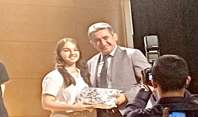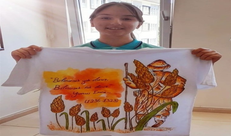 İçmeler İnayet Coşkun Kodak Ortaokulu 7. sınıf öğrencisi Melek Bayri, 700 ortaokulun katıldığı yarışmada Yunus Emre’nin ‘Bölünürsek yok oluruz, bölüşürsek tok oluruz’ sözü ile tasarladığı tişört ile birinci olarak hem ailesine hem de okuluna gururlu sevinç yaşattı. Önce kağıt üstünde tasarlayıp, sonra beyaz bir tişörte kumaş boyası ile tasarımlarını resmeden yetenekli öğrenci, Menteşe Milli Eğitim ilçe Müdürü İdris Kömürcü’nün elinden ödülünü aldı. Melek Bayri dereceye girdiği için çok mutlu olduğunu ifade ederek öğretmenleri ve ailesinin desteği ile çalışmalarına devam edeceğini belirtti.