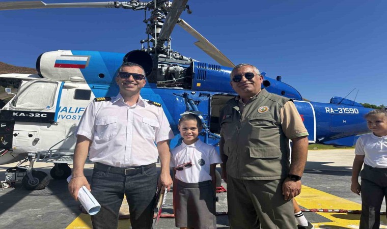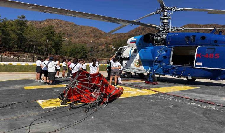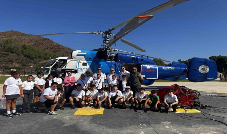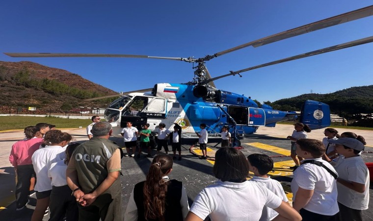 Marmaris Evren Paşa İlköğretim okulu öğrencileri, öğretmenleri Seda Öğretmen eşliğinde, Hisarönü Mahallesi’nde bulunan Orman İşletme Şefliği’ne konuşlu yangın helikopteri pilotu Mehmet Aktoz ile tanışarak, yangınlara nasıl müdahale edilir, pilot olmak için neler yapılır, başlarına gelen olaylar nelerdir gibi sorular sorarak bilgiler aldı.