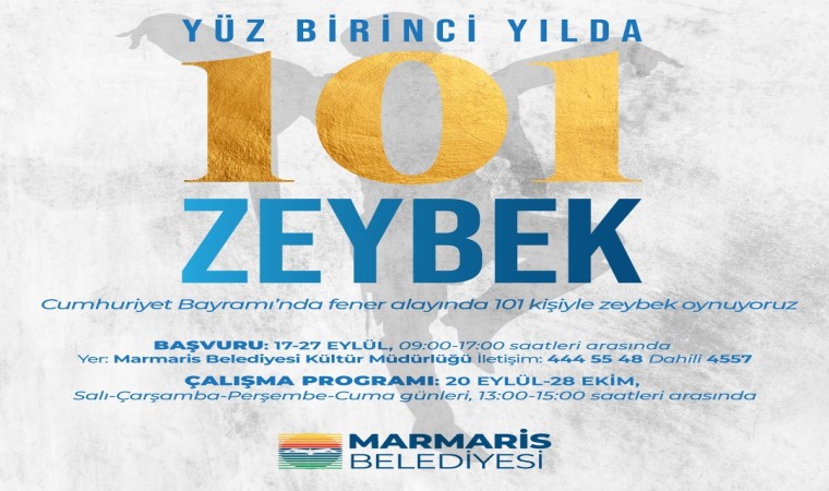 Marmaris Belediyesi, Cumhuriyet’in kuruluşunun 101’inci yılına özel zeybek gösterisi düzenleyecek.
