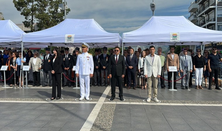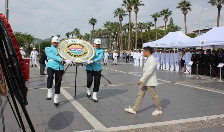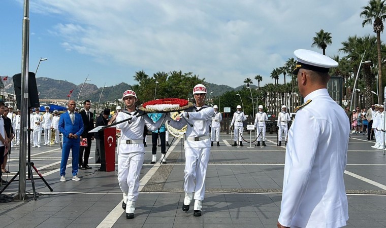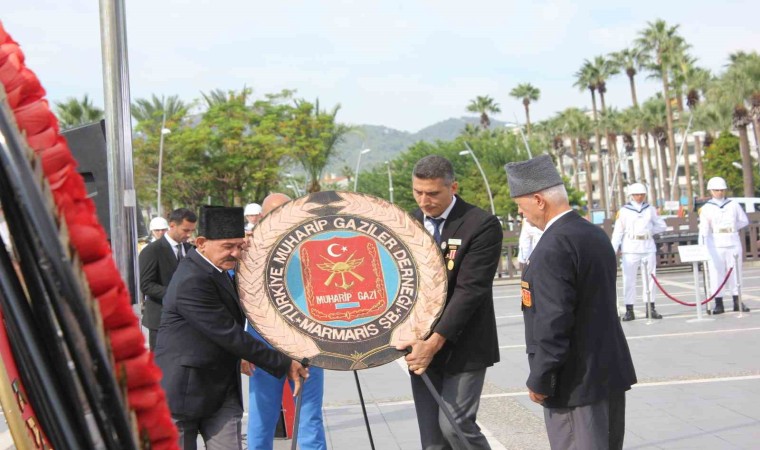 Marmaris Atatürk Meydanı’nda düzenlenen programda, Kaymakam Nurullah Kaya, Aksaz Garnizon Komutanı Tuğamiral Neslim Eski, Belediye Başkanı Acar Ünlü ve Muharip Gaziler ilçe Temsilcisi Azmi Özkan Atatürk anıtına çelenk sunumu gerçekleştirdi. Çelenk sunumunun ardından Aksaz Bandosu eşliğinde 1 dakikalık saygı duruşu ve İstiklal marşı okundu. Akabinde günün anlam ve önemini anlatan konuşma, şiir okuması ve Aksaz Deniz Üs Komutanlığı bandosu konseri ile tören tamamlandı.
