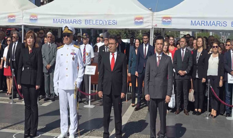 Marmaris Atatürk Meydanı’nda düzenlenen törende Marmaris Kaymakamı Nurullah Kaya, Aksaz Deniz Üs Komutanı Neslim Eski ve Marmaris Belediye Başkanı Acar Ünlü Atatürk anıtına çelenk sundu. Aksaz Askeri Bandosu’nun eşliğinde, saygı duruşu ve İstiklal Marşı okunması ile başlayan törene Marmaris Kaymakamı Nurullah Kaya, Aksaz Deniz üs komutanı Neslim Eski, Marmaris Belediye Başkanı Acar Ünlü, Marmaris Cumhuriyet Başsavcısı Fatmagül Yörük, İlçe Jandarma Komutanı Binbaşı Berker Dongul, İlçe Emniyet Müdürü Emre Alay, siyasi parti başkanları, STK temsilcileri, ilçedeki kurum ve kuruluş müdürleri katılım sağladı.