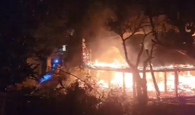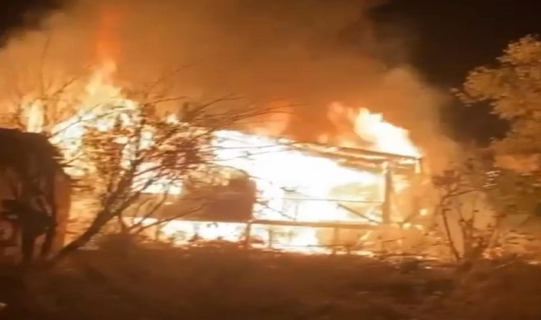 Muğla’nın Marmaris ilçesinde iddiaya göre ahşap bungalov ev tamamen yanarak küle dönerken, yangınla ilgili 2 şüpheli gözaltına alındı.