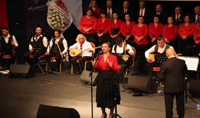Ege Türküleri ve Zeybekler 100. Yıl Özel Konseri Armutalan Kültür Merkezi’nde yoğun bir katılımla düzenlendi. Şef Yavuz Özkaran yönetiminde sahne alan Marmaris Türk Halk Müziği ve Folklor Derneği korosu birbirinden güzel türküler seslendirdi. 100. Yıl özel konserinde Atatürk’ün sevdiği türküler de hep birlikte seslendirildi. 10 kişiden oluşan orkestra eşliğinde Kerimoğlu Zeybeği, Çıktım Belen Kahvesine, Cemilenin Gezdiği Dağlar Meşeli, Ah Bir Ataş Ver, İki Keklik Bir Kayada gibi sevilen türküler koro ve solistler tarafından söylendi. Konser sonunda protokol üyeleri de sahneye çıkarak Hoş Gelişler Ola adlı türküyü seslendirdi. Dernek Başkanı Yüksel Topaloğlu da Başkan Yardımcısı Suzan Zift’e Marmaris Belediyesi’nin destekleri için teşekkür plaketi sundu.