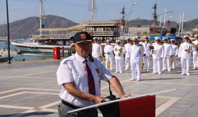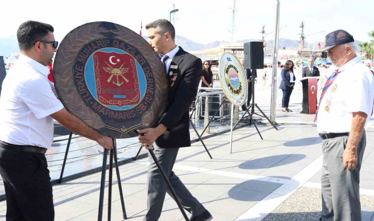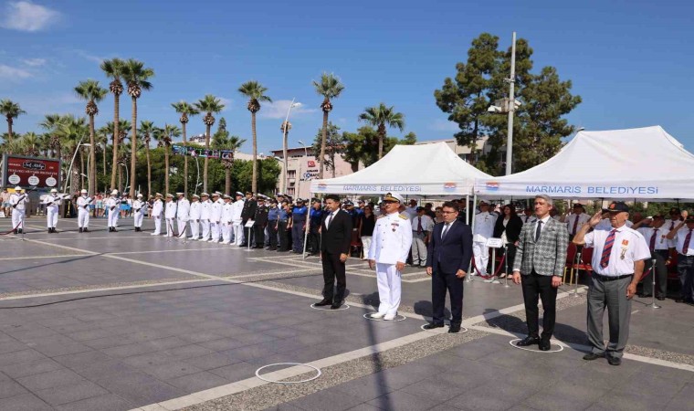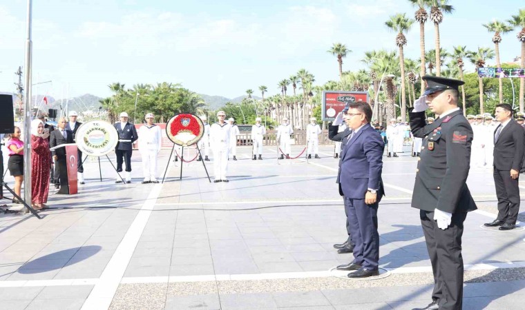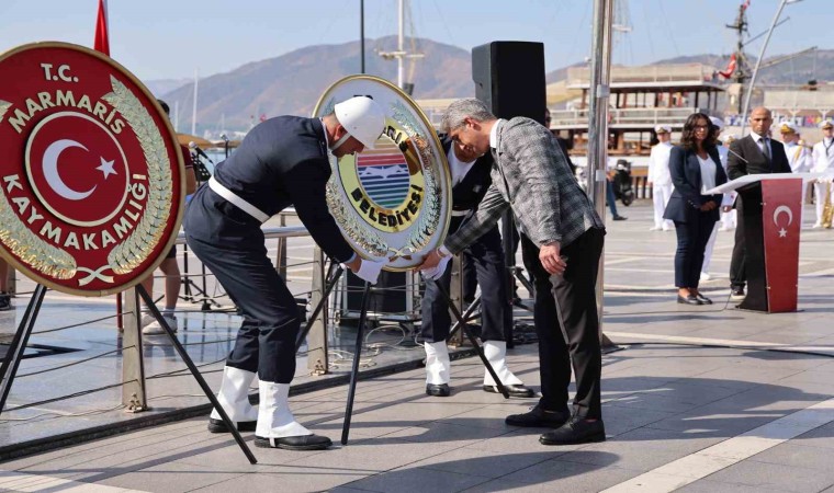 Marmaris Atatürk Meydanı’nda sabah saat 10.30 ’da başlayan programda, Kaymakam Nurullah Kaya , Aksaz Garnizon Komutanı Tuğamiral Neslim Eski, Belediye Başkanı Mehmet Oktay ve Muharip Gaziler ilçe Temsilcisi Azmi Özkan çelenk sunumu yaptı. Çelenk sunumunun ardından Aksaz Bandosu eşliğinde 1 dakikalık saygı duruşu ve İstiklal Marşı okundu. Aksaz Deniz Üs Komutanlığı’nda görevli Deniz Binbaşı Tevfik Kerim Kaya ve Muharip Gaziler Derneği Marmaris temsilcisi Azmi Özkan günün anlam ve önemi anlatan konuşmalarını yaptı. Öğrencilerin şiir okumaları ve Aksaz Deniz Üs komutanlığı Bandosu konseri ile Atatürk Meydanı’ndaki program sona erdi.