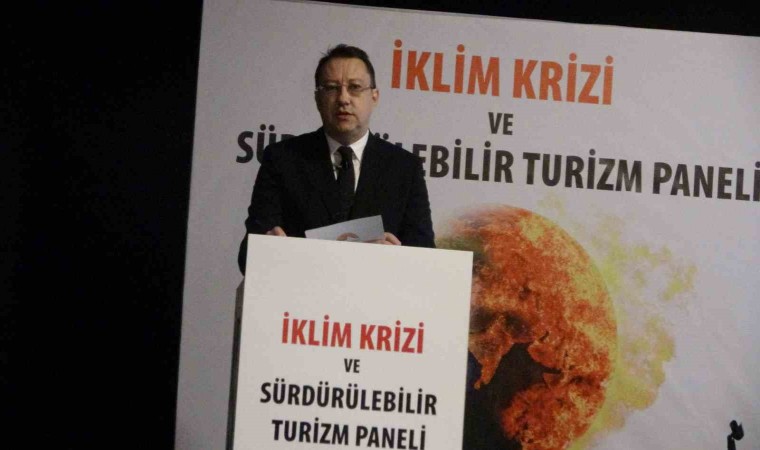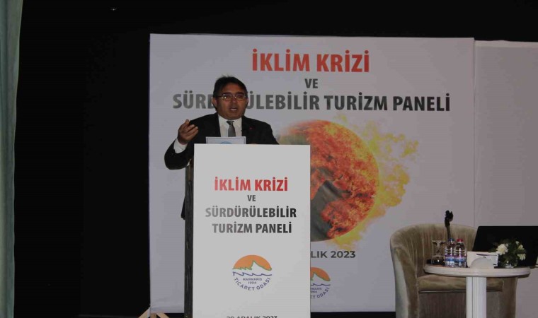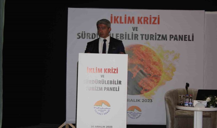 Marmaris Kaymakamı Nurullah Kaya ‘İklim Krizi ve Sürdürülebilir Turizm ‘ konulu panelde yaptığı konuşmada ‘Küresel iklim krizi derken artık uzak bir gelecekte yaşanabilecek felaketlerden değil tam da bugünden bahsediyoruz. Bugün adını sıkça duyduğumuz küresel iklim krizi, beraberinde getirdiği yıkıcı doğal afetler sebebiyle, tüm dünyayı acil eylem planları oluşturmaya sevk etmektedir. Sürdürülebilir bir dünya ve yeşil bir gelecek için, içinde bulunduğumuz küresel iklim krizini ve sebeplerini bilmek hayati bir önem taşımaktadır. İklim krizinin, tüm dünyada olduğu gibi ülkemizde de turizme olan etkisi bir gerçek. Turizmin, İlçemizin en büyük geçim kaynaklarından biri olduğu gerçeği karşısında sürdürülebilir turizm bizim için çok daha önemli bir anlam ifade ediyor ve turizmin daha sürdürülebilir bir hale gelmesi, turizm sektörünün bir bütün halinde çalışması açısından gerekli bir yaklaşım olarak karşımıza çıkıyor’’ sözlerine yer verdi.