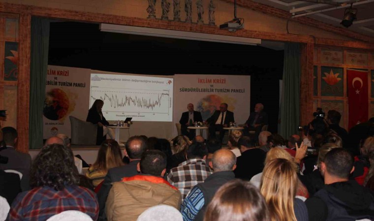 Turizm danışmanı Başak Erel’in moderatörlüğünü yaptığı iki bölümden oluşan interaktif İklim Krizi ve Sürdürülebilir Turizm konulu panele ilçe protokolü yanı sıra turizmciler de yoğun katılım sağladı. MTO başkanı Ayhan panelde ‘Dünya’nın İncisi Marmaris son birkaç yılda yaşadığı orman yangınları, sel, hortum, iri ve şiddetli dolu yağışı, hatta lapa lapa kar yağışı ile iklim krizi karşısında büyük bir sınavdan geçiyor’ dedi.