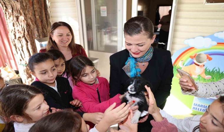 Marmaris Kaymakamı Nurullah Kaya’nın eşi Sümeyra Kaya, Şehit Ahmet Benler İlkokulu öğrencileriyle birlikte Marmaris Belediyesi Geçici Hayvan Bakımevi’ni ziyaret etti. Sümeyra Kaya ve öğrenciler Geçici Bakımevi’ni gezerek merak ettikleri soruları Belediye Veteriner Hekimi Bora Deveci’ye yöneltti. Bakımevi’nde yapılan çalışmalarla ilgili bilgi veren Bora Deveci, “Can dostlarımızı burada en iyi şartlarda misafir etmeye çalışıyoruz. Ama onların esas ihtiyacı sıcak ve sevgi dolu bir yuva. Bu nedenle siz küçüklerimizden büyüklerine ‘satın alma sahiplen’ çağrısı yapmanızı istiyoruz” dedi.