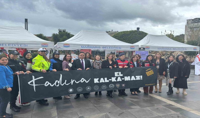 8 Mart Dünya Kadınlar Günü dolayısıyla Marmaris’te düzenlenen programlar devam ederken, görevli Polisler ve Jandarmalar, günün önem ve anlamını anlatmak için farkındalık çalışması gerçekleştirdi. Marmaris Kaymakamı Nurullah Kaya ve ilçedeki kadın kurum müdürlerinin de destek verip ziyaret ettiği 19 Mayıs Meydanı’nda açılan stantta çiçekler dağıtan kadın polis ve jandarmalar vatandaşları KADES konusunda bilgilendirip çiçekler verip, erkeklere ‘kadına el kalkamaz’ yazılı broşürler dağıttı. Meydanda kurulan standın önünde ‘Kadına el kalkamaz ‘ afişi açarak toplu fotoğraf çekilen etkinlikte yüzlerce Marmaris yaşayanı kadın için şiddete hayır çağrısı yapılıp, kadınlar günü kutlandı.