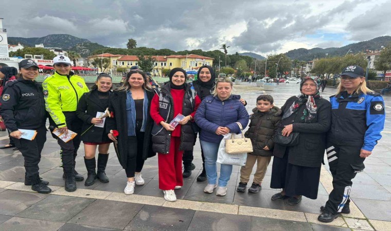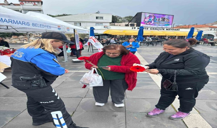 Muğla’nın Marmaris ilçesi emniyet müdürlüğü ve Jandarma komutanlığına bağlı polis ve asker kadınlar, 19 Mayıs Meydanı’nda stant açarak vatandaşlara hem çiçek dağıttı, hem ‘kadına el kalkamaz ‘ dedirtti.