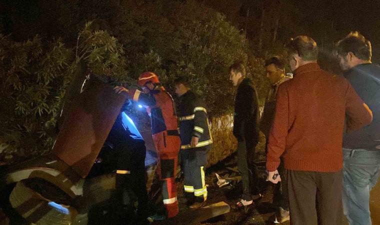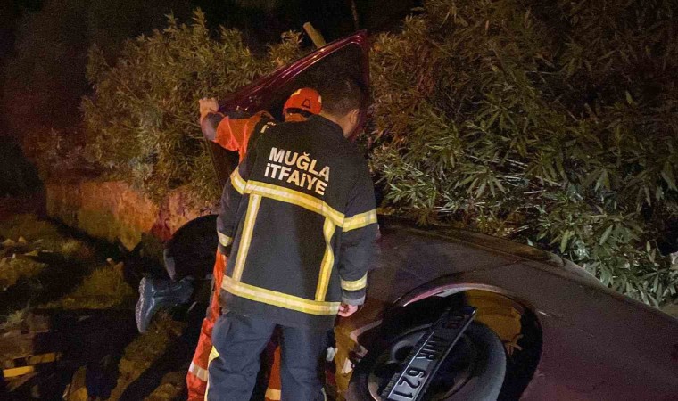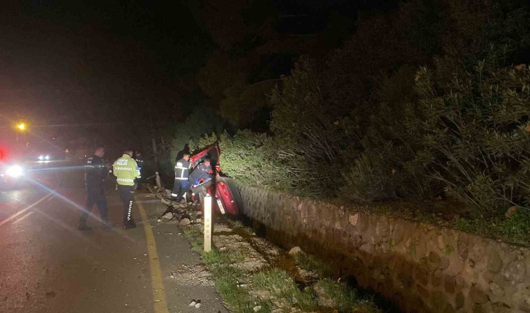 Muğla’nın Marmaris ilçesinde bir araç virajı alamayınca yol kenarındaki bariyerlere ve çöp konteynırına çarparak refüje düştü. Otomobilde yalnız olan şoför burnu bile kanamadan araçtan çıkarıldı.
