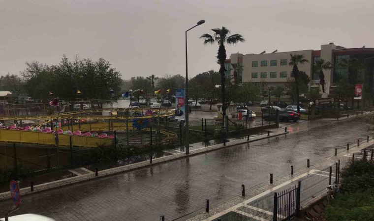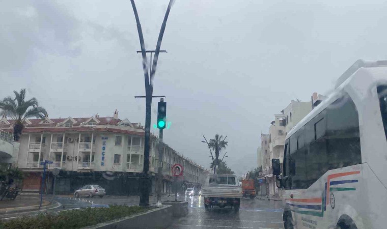 Muğla’nın Marmaris ilçesinde başlayan ve yer yer şiddetini arttıran gök gürültülü sağanak yağış hayatı olumsuz etkiledi.