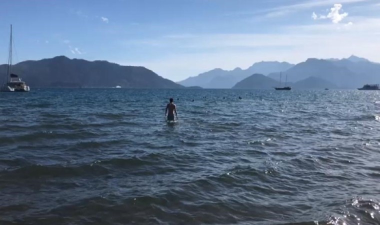 Muğla’nın Marmaris ilçesinde yaşayan bazı vatandaşlar güneşli havayı fırsat bilip denize girdi. Deniz suyunun sıcak olduğunu belirten bir kişi ‘yüzmeyi çok seviyorum yaz gibi ‘ dedi.