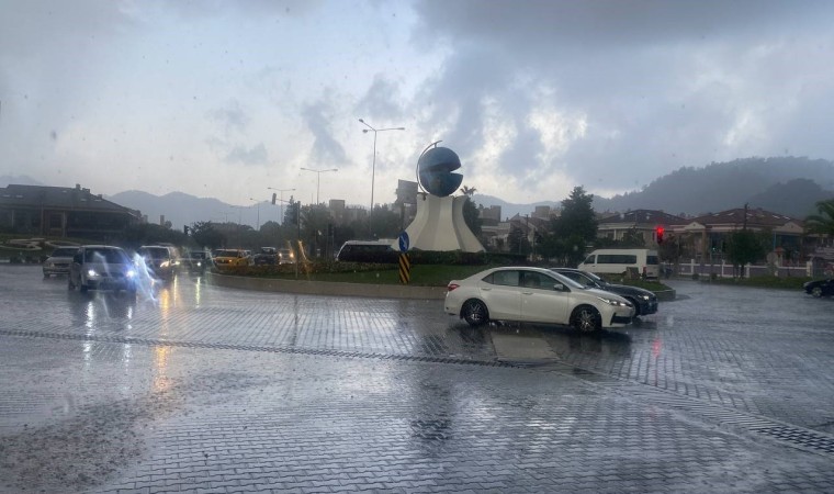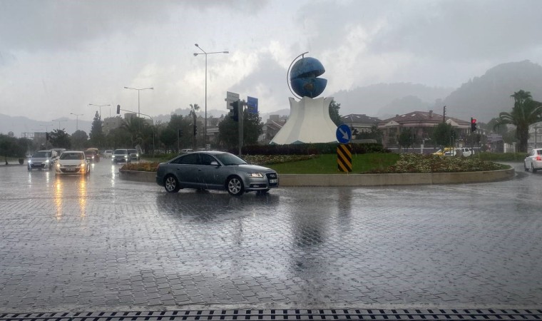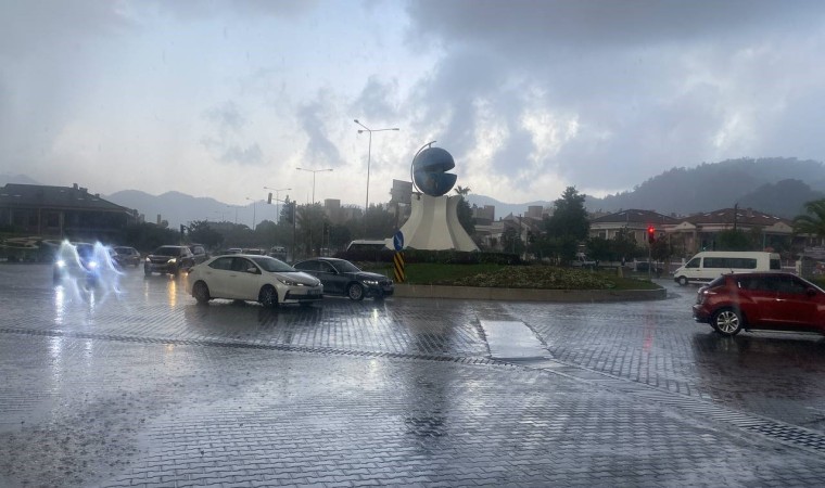 Muğla’nın Marmaris ilçesinde sabah saatlerinde başlayan sağanak yağmur yer yer gücünü arttırarak etkisini gösterdi.