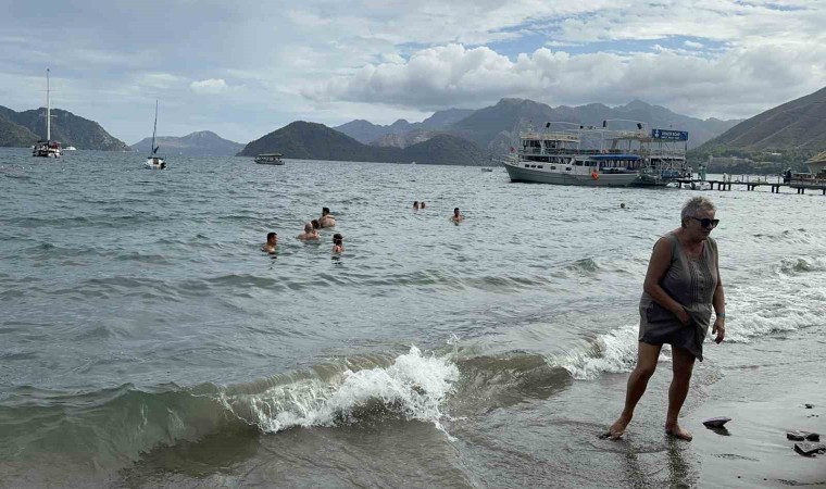 Ülkemizin ve dünyanın en gözde turizm kentlerinden olan Marmaris’te hava sıcaklıkları Eylül ayı olmasına rağmen yaz mevsimini aratmıyor. Kısa süreli bulut geçişi ile yağmur yağarken bazı turistler kalkıp gitti, bazıları ise denizde yüzdü.