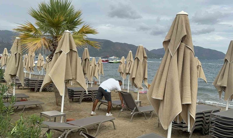 Turizm sezonunun devam ettiği Muğla’nın Marmaris ilçesinde, sonbahar mevsiminin gelmesi ile birlikte kısa süreli yağmurlar da başladı. Tatilciler yağmura aldırmadan sahilde oturup denizde yüzerek keyif yaptı.