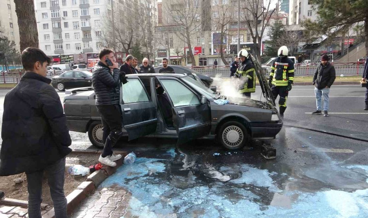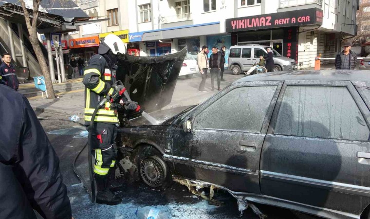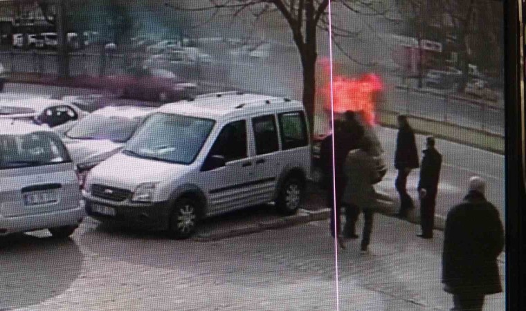 Kayseri’nin Kocasinan ilçesinde bir otomobil, sürücüsünün çalıştırmak için marşa basmasıyla birlikte alev aldı. Vatandaşlar yanan otomobili söndürmek için kovalarla su taşırken, o anlar saniye saniye güvenlik kamerasına yansıdı.