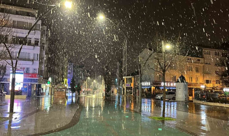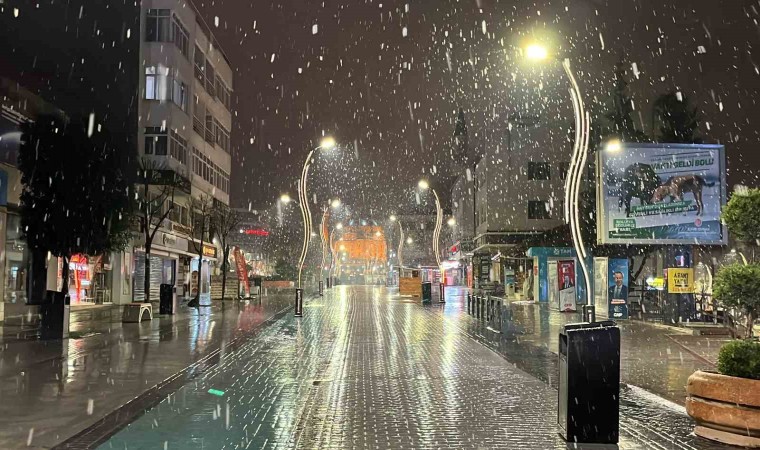 Bolu’da gece saatlerinde kar yağışı etkili oluyor. Kent merkezine yağan kar kartpostallık görüntülere sahne oldu.