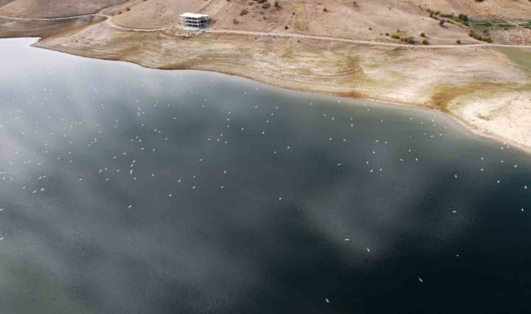 Yüzlerce martı baraj göleti üzerinde süzülürken, o anlar dron kamerası ile kaydedildi. Sürü halinde uçan martılar bir müddet sonra gözden kayboldu.
