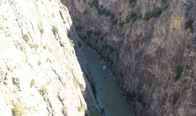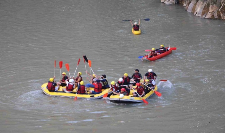 Erzincan Valisi Hamza Aydoğdu, Karasu Nehrinin içerisinden geçtiği doğasıyla masalsı bir kanyon görüntüsü veren Kemah ilçesi sınırlarında yer alan bölgede rafting yaptı.