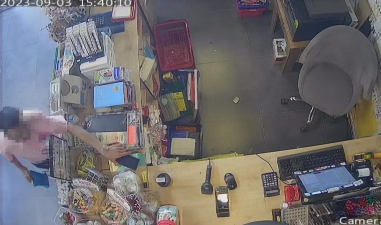 Başakşehir’de bir kırtasiye dükkanına giren şahıs masanın üzerinde bulunan telefonu saniyeler içerisinde çalarak kayıplara karıştı. Hırsızlık anı işletmenin güvenlik kamerası tarafından anbean görüntülerdi. Görüntülerde İşletmenin boş olduğunu gören şahsın içeri girip telefonu çaldıktan sonra hızla uzaklaştığı görüldü.