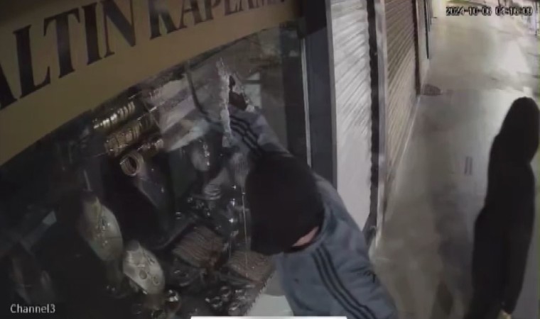Olay, dün gece saat 04.15 sıralarında Mimar Sinan Caddesi üzerindeki bir iş yerinde meydana geldi. Gece saatlerinde iş yerinin vitrininde bulunan altın kaplama bilezikleri gerçek sanan maskeli 2 hırsız, çekiçle vitrini kırarak soygun gerçekleştirdi. 112 Acil Çağrı Merkezine yapılan ihbarın ardından bölgeye gelen polis ekipleri, durumu işletme sahibine bildirdi. Olay yeri inceleme ekiplerinin yaptığı çalışmaların ardından soyguncuların yakalanması için çalışma başlatıldı. Hırsızlık anı iş yerinin güvenlik kamerasına da anbean yansıdı. Görüntülerde maskeli hırsızlardan birinin iş yerinin vitrinine çekiçle defalarca vurarak kırdığı, ikinci soyguncunun ise bilezikleri aldığı, daha sonra maskeli hırsızların hızla uzaklaştıkları anlar yer aldı.