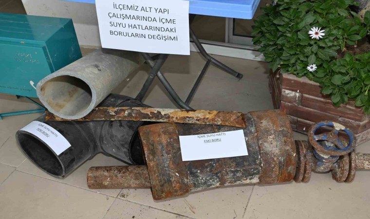 MASKİ Genel Müdürlüğü tarafından yapılan büyük altyapı dönüşümü esnasında kazı çalışmaları sırasında çıkan eski borular da ilçe merkezinde sergileniyor. Aydınyer de ilçe merkezinde kurulan stanttaki eski-yeni boruları inceledi.