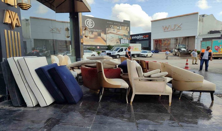 İstanbul’un bazı ilçelerinde salı günü akşam üzeri başlayan sağanak yağış nedeniyle sel felaketi yaşanmıştı. 2 kişinin hayatını kaybettiği felakette birçok iş yeri ve evde maddi hasar meydana gelmişti. MASKO Mobilyacılar Sitesi’nde ise istinat duvarının çökmesi ile sel suları iş yerlerine girmişti. Basınç nedeniyle patlayan iş yeri camlarıyla birlikte mobilyalar su içinde kalmıştı. Kullanılmaz hale gelen iş yerlerinde dün esnaf ve ekipler tarafından temizlik yapıldı. İş yerlerini tek tek gezen ekipler hasar tespiti de yaptı. Bazı iş yerlerinde ise vidanjör yardımıyla su tahliyeleri devam ediyor.