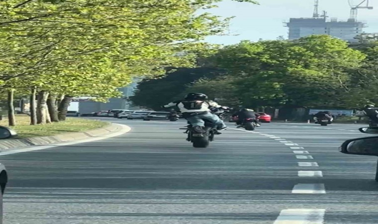 Sarıyer Maslak Büyükdere Caddesi üzerinde seyreden motosikletli bir grup, trafikte giden araçların arasında tek tekerlek üstünde gitti. Hem kendi hem de sürücülerin canını hiçe sayan atan motosikletliler, trafiği dakikalarca tehlikeye düşürdü. Yaşananlar ise cep telefonu kamerasına yansıdı.