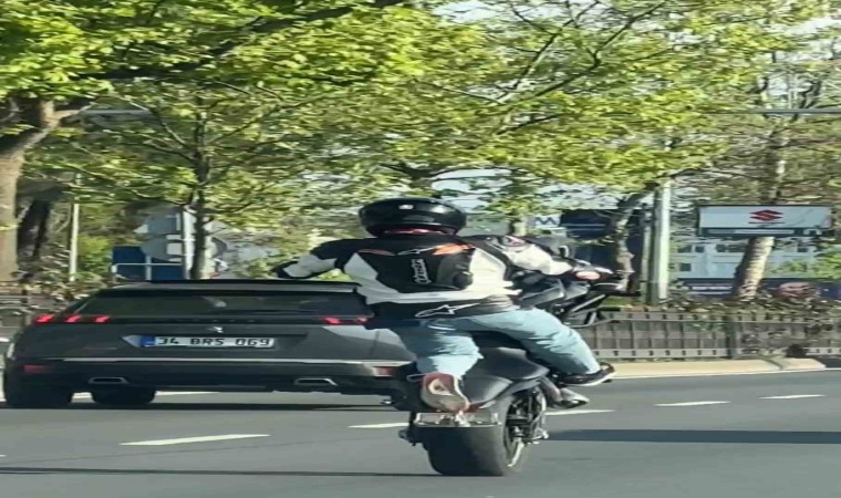 Sarıyer Maslak’ta motosikletli grup, tek tekerlek üzerinde giderek trafiği tehlikeye düşürdü. Hem kendi hem de sürücülerin canını hiçe sayan grubun tehlikeli yolculuğu kameralara yansıdı.