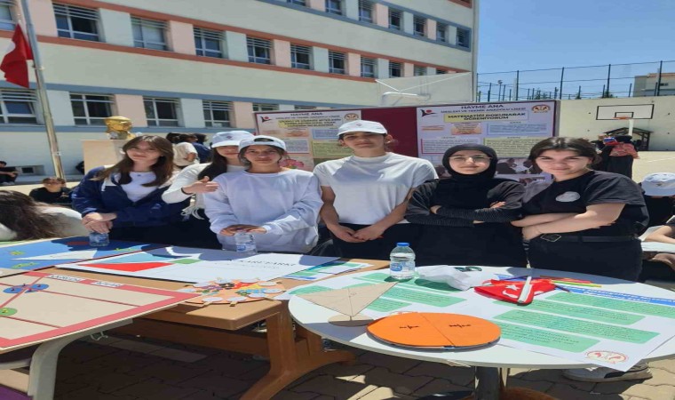 Bilgi Evi’nde yer alan Matematik Müzesi’ndeki geometrik şekiller ve matematikle ilgili görsellerden faydalanarak, proje üreten öğrenciler, okul bahçesinde kurdukları stantlarda projelerini anlattılar.