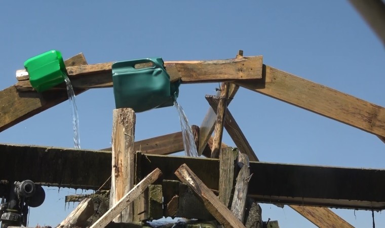 Altı metre yüksekliği bulunan çark sayesinde 150 metre öteye suyu taşıdığını ifade eden Yüzgül, elektrik ve mazot harcamadan tarlasını suladığını ifade ederek, “Bu tarlaya meyve ağaçları dikerken buralarda su yoktu. Maddi durumum da çok iyi değildi. Her zaman elektriğe veyahut mazot ile su alamazdım. Ben çok düşündüm, nasıl bir iş yapayım, nasıl bir teknoloji geliştireyim. Düşündüm taşındım bu pervane aklıma geldi. Pervane aklıma gelince nasıl yapacağımı çok düşündüm. Suyun içine ana rıhtımları dikerken direkleri o ana rıhtımların üstüne bilye ile diktim. Bilyenin içine bir mil geçirdim. Millin içinde de 2 tane tırmık tekeri geçirdim. Tırmık tekerlerine o rıhtımların ayaklarını bağladım. 18 tane rıhtım var ve her rıhtımın başında birer tahta var. Tahtalar suyun içine girince su tahtaya vuruyor ve rıhtımları çeviriyor. Rıhtımları çevirince pervane komple dönüyor. Su almak için boru bağladım olmadı. Borular olmayınca kovaları bağladım. Kovaları tahtaya çaktım ve başarılı oldum. Tahtadan bir küvet yaptım. Su, kovalar yardımı ile küvetin içine taşınıyor. Küvetin içine bir boru düzeneği yerleştirdim. Boru yardımı ile suyu tarlanın içine götürdüm. Buradan aldığım su ile 15 dönümlük tarlamı suluyorum, su fazladır az değildir. Tarlama yetecek kadar su çıkıyor. Bu su fazlasıyla işimizi görüyor. Tarımla uğraşan ve tarlası su kanalına yakın olan tüm arkadaşlarıma tavsiye ediyorum bu sistemi. Mazot ve elektrik harcamadan suyu tarlama alıyorum. Su değirmenini tamamen atık malzemeden yaptım. Para harcamadan bu sistemi yaptım. Pervanenin yüksekliği 6 metreden oluşuyor. Yaklaşık 150 metre uzağa su alabiliyorum. Bu sistem sayesinde 15 dönümlük meyve bahçemi ve ektiğim sebzeleri para harcamadan sulayabiliyorum” dedi.
