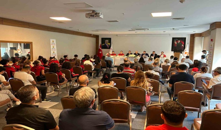 Toplantının sonunda 2024 Paris Olimpiyatları’na katılacak sporcular İbrahim Çolak, Ahmet Önder ve Adem Asil’e Türk Bayrağı takdim edildi.