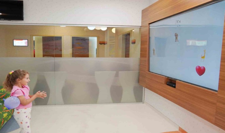 İEÜ Medical Point Hastanesinin çocuk bölümüne yerleştirilen AR (Artırılmış Gerçeklik) video teknolojisiyle donatılmış cihaz, çocukların hem eğlenmesini hem de gelişimlerine katkı sağlamayı hedefliyor.