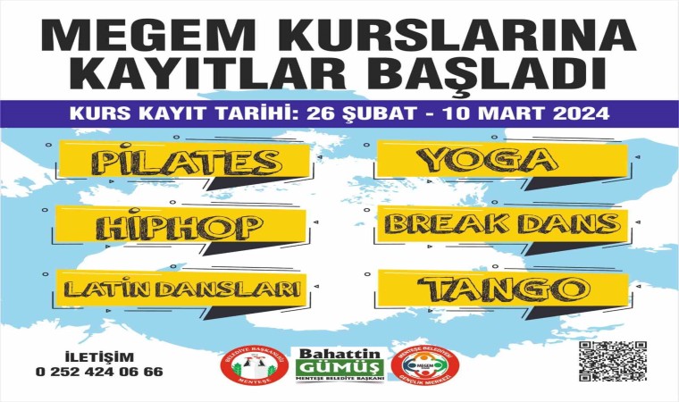 Menteşe Belediyesi’nin Kötekli Gençlik Merkezinde (MEGEM) açtığı ücretsiz kurslara kayıtlar başladı. Kurslara kayıt yaptırmak isteyenler MEGEM’in 0 252 424 06 66 numaralı telefonundan ya da https://forms.gle/RXBEfDqyowNxXu859 linkten başvuruda bulunabilirler.