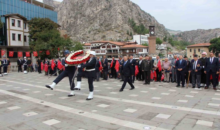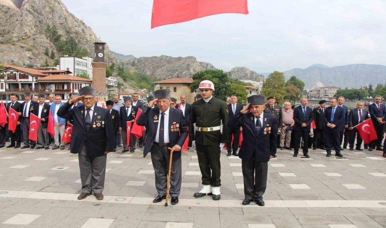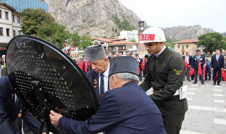 Amasya’da 19 Eylül Gaziler Günü töreninde görevlendirilen bir asker, bastonuyla yürümeye çalışan gazinin koluna girip tören boyunca destek oldu.