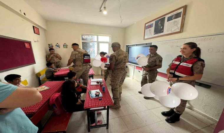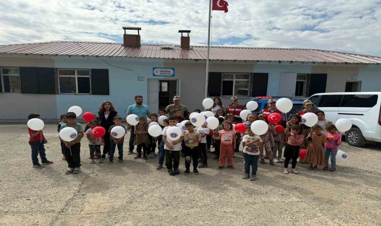Karşılarında gördükleri askerlerin elinden hediyeleri alan öğrenciler, askerlere teşekkür etti.