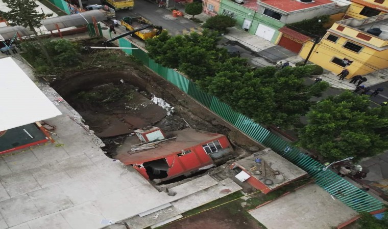 Meksika’nın başkenti Mexico City’nin kuzeyindeki Gustavo A. Madero ilçesinde bir spor salonunun yer aldığı bina, su borusunun patlaması sonucu temeli hasar görerek yolda açılan çukurun içine devrildi. Yetkililer, çukurun 29 Temmuz Cumartesi günü oluştuğunu ve çukurun hemen yanında yer alan boks salonu olarak kullanılan binanın tahliye edildiğini açıkladı. Yaklaşık 8 metre genişliğinde, 10 metre uzunluğunda ve 8 metre derinliğinde olan çukura yan yatan binada can kaybı ve yaralanan olmadı.