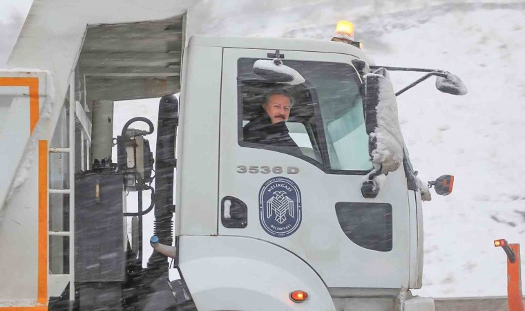Melikgazi Belediyesi gece saatlerinde başlayan kar yağışının ardından yol açma ve tuzlama çalışmalarına başladı.