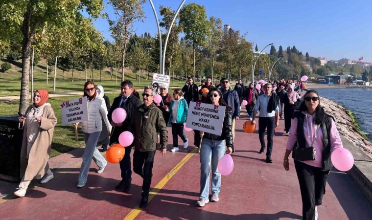Kocaeli genelinde kadınlar, ekim ayı boyunca meme kanserine dikkat çekmek ve vatandaşları bilinçlendirmek amacıyla pembe giyinerek yürüyüş yaptı.