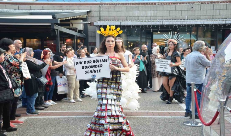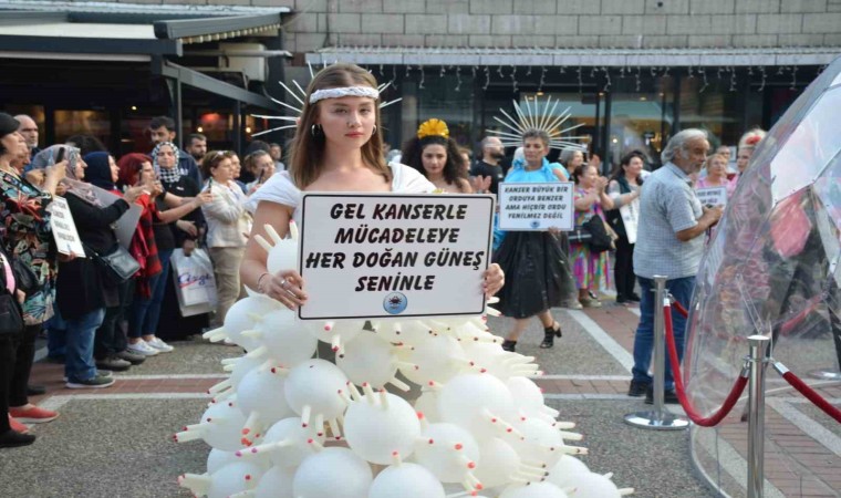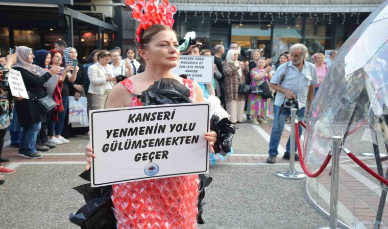 Bursa Kanser Derneği tarafından düzenlenen defilede, kanserojen etkisi bulunan atık maddelerden yapılan giysiler kanser hastası kadınlar ve yakınları tarafından tasarlanıp sergilendi.