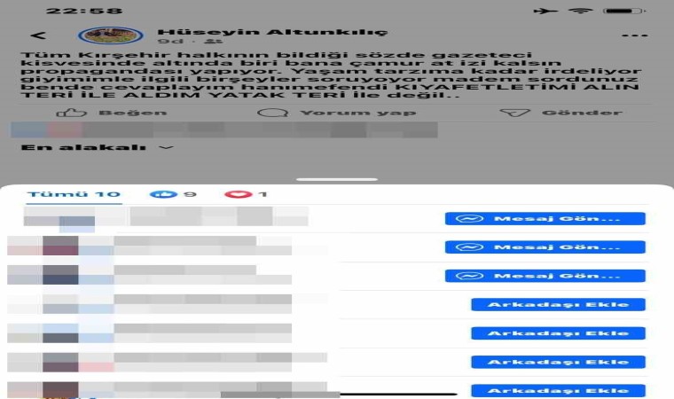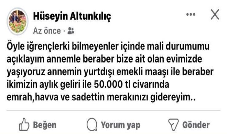 Hüseyin Altunkılıç ise, bir süre sonra paylaşımını sosyal medya hesaplarından kaldırdı.